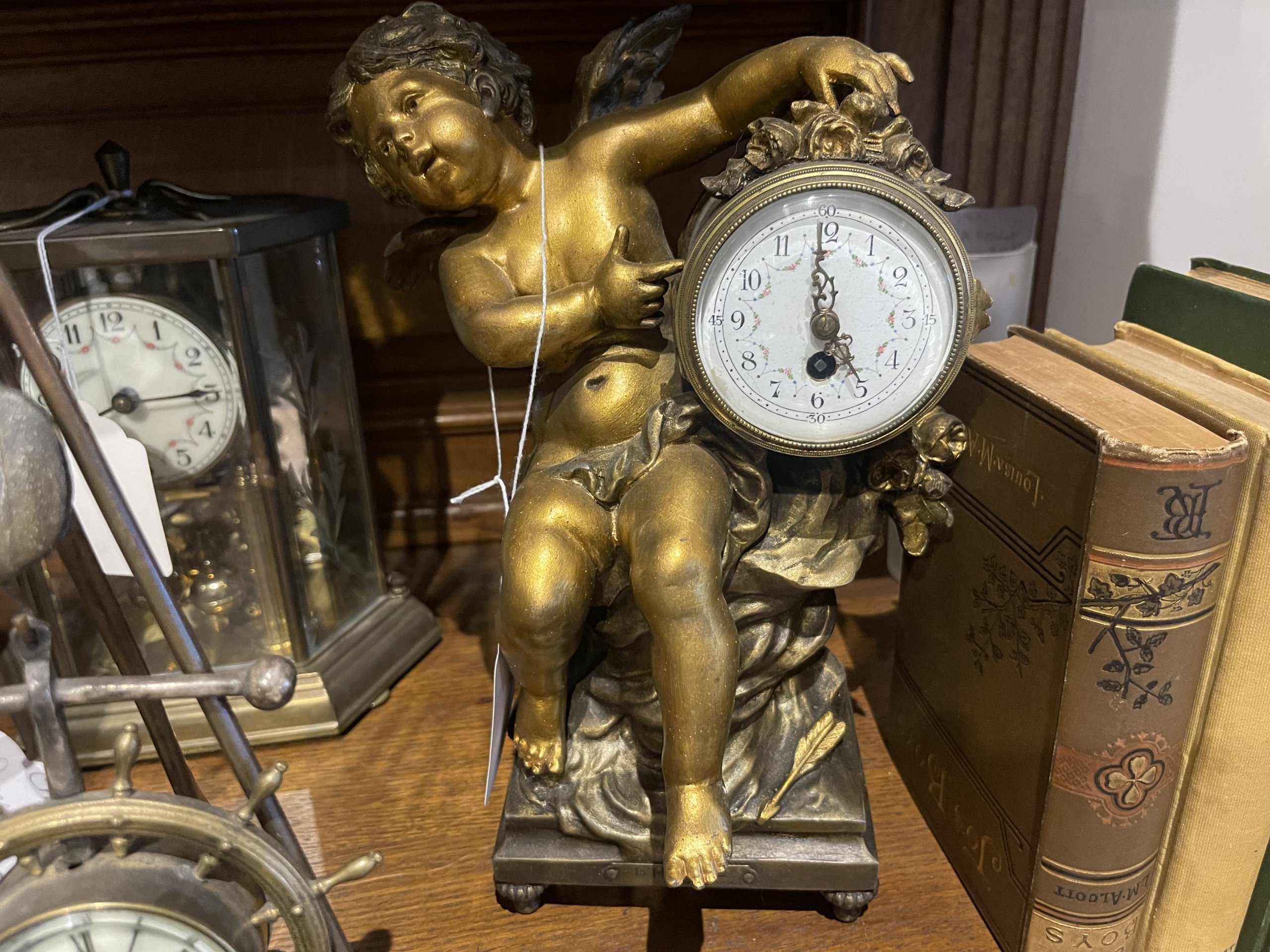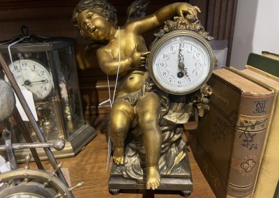 Large French Statue Woman resting on pedestal porcelain dial with Lilies circa 1880’s 28” H time/strike on bell